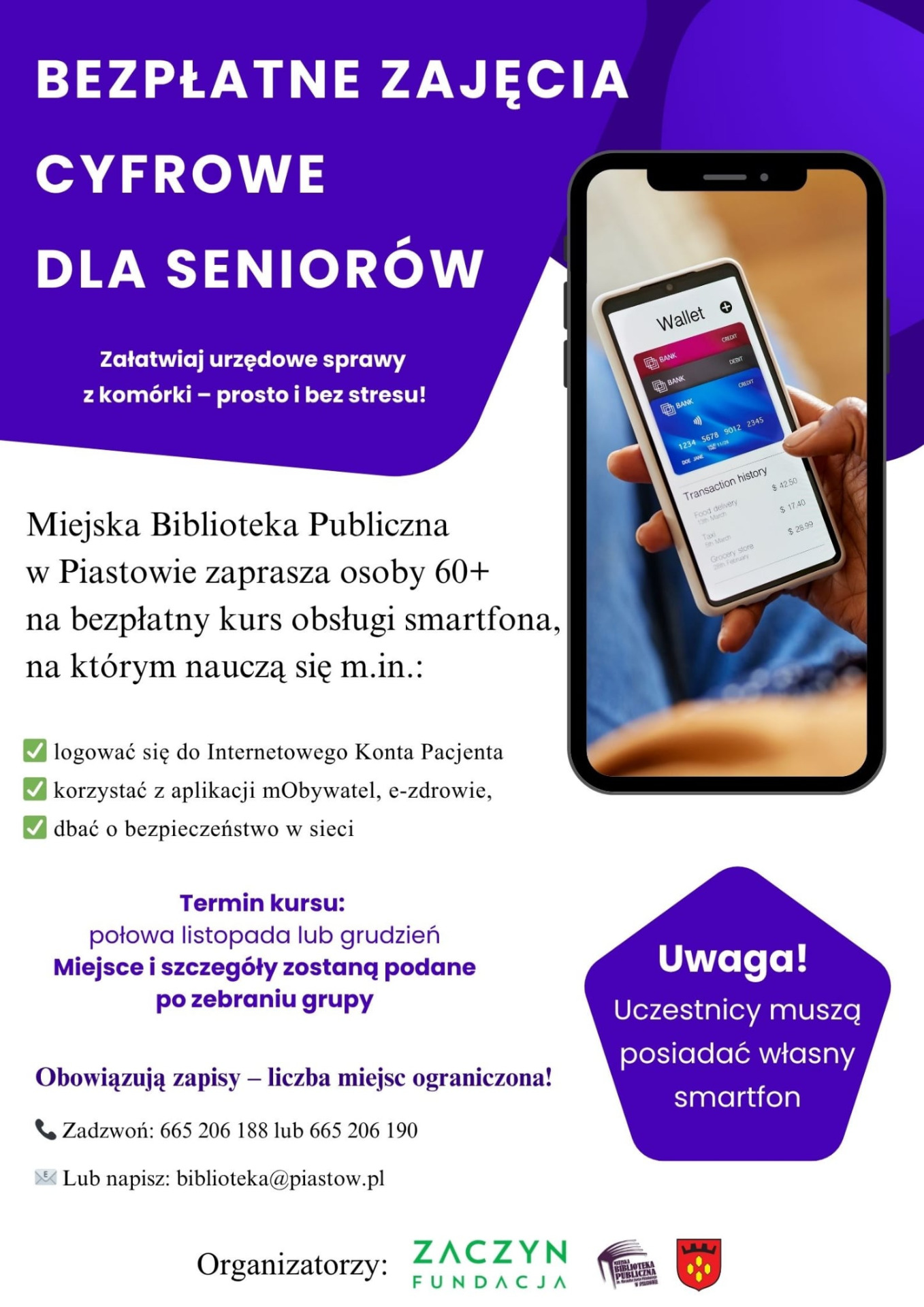 Miejska Biblioteka Publiczna w Piastowie zaprasza na bezpłatne zajęcia dla seniorów, podczas których: nauczysz się korzystać z e-Urzędu i aplikacji mObywatel,