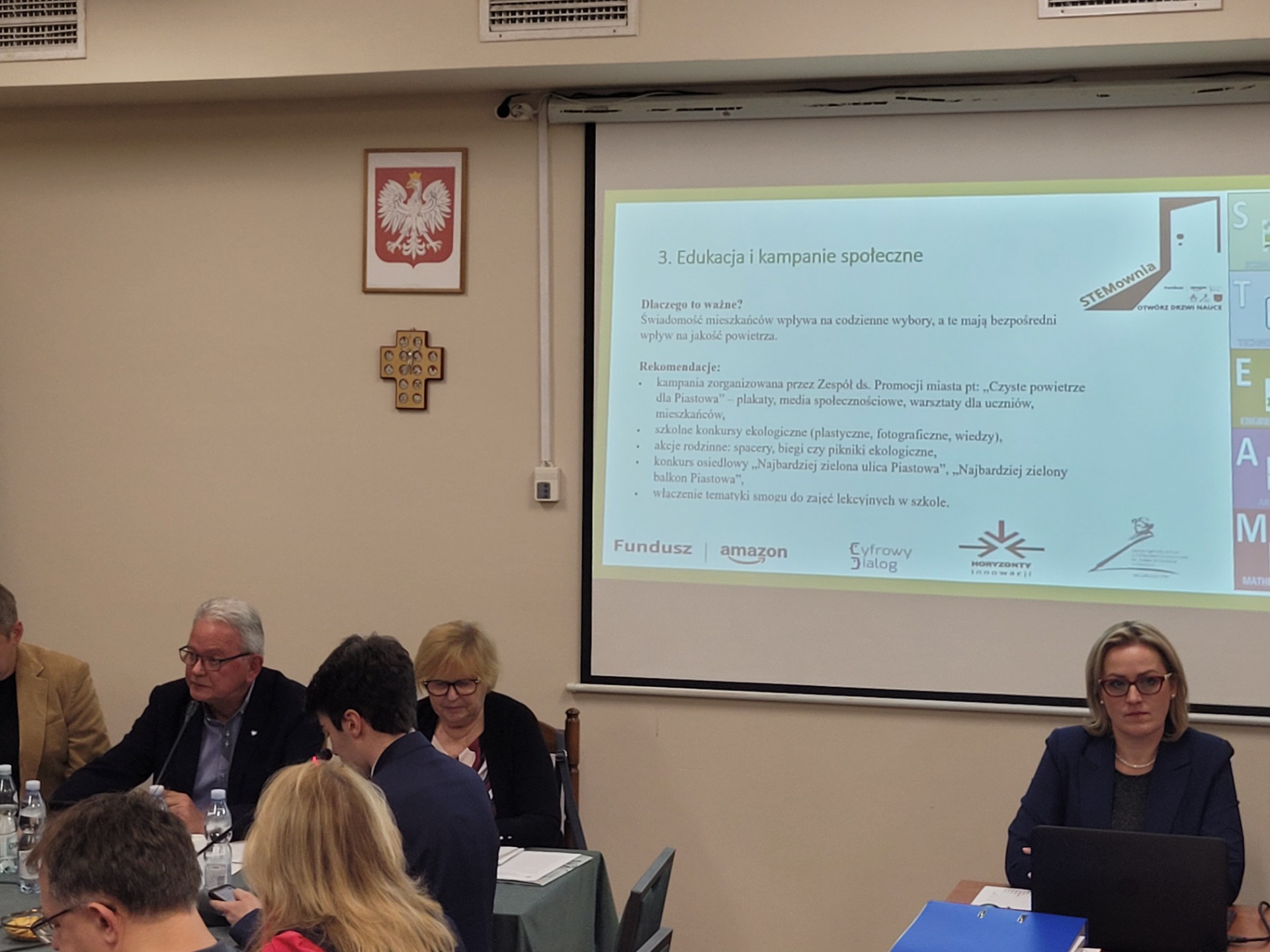 Podczas sesji Rady Miejskiej w dniu 28 października uczniowie szkół podstawowych i liceum mieli okazję zaprezentować szczegółowy raport dotyczący jakości powietrza w Piastowie, opracowany na podstawie badań i obserwacji prowadzonych na terenie miasta w ramach projektu pozyskanego z grantu z Funduszu Amazon i Cyfrowego Dialogu o nazwie „STEMownia – Otwórz Drzwi Nauce”. W spotkaniu uczestniczył Pan Burmistrz Tomasz Jankowski Pani wiceburmistrz Urszula Skrzypczak, Pani wiceburmistrz Barbara Dudzik-Szelągowska, Radni Rady Miejskiej w Piastowie, pani Dyrektor Liceum Z Oddziałami Dwujęzycznymi im. Adama Mickiewicza Hanna Babikowska, koordynatorka projektu Monika Kwatek, autorka projektu Aneta Czyż-Pachołek oraz zaproszeni goście. Autorzy raportu – młodzi mieszkańcy Piastowa i powiatu pruszkowskiego zaangażowani w działania proekologiczne – podkreślili, że troska o środowisko to nie tylko obowiązek władz, ale wspólna odpowiedzialność wszystkich mieszkańców.