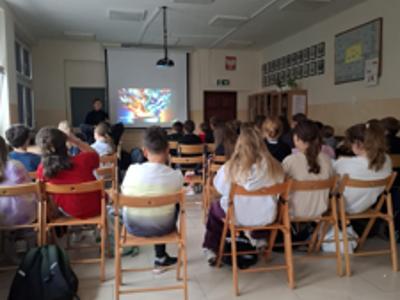 Pierwsze spotkanie odbyło się z uczniami z klas czwartych i piątych w Szkole Podstawowej nr 5 w Piastowie. Poruszane z młodzieżą tematy dotyczyły m.in.: