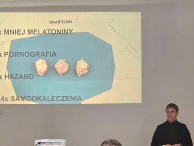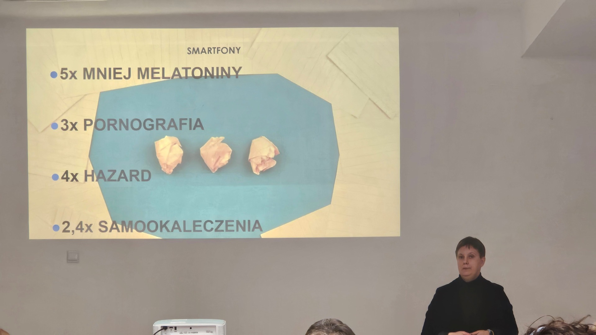 W tym samym dniu, w godzinach popołudniowych odbyło się, również prowadzone przez Panią dr Monikę Przybysz, szkolenie dla rodziców pt. "Rodzic w cyfrowym świecie - narzędzia i wskazówki na co dzień. Nasza prelegentka podzieliła się z rodzicami nie tylko wiedzą, ale też własnym doświadczeniem oraz praktycznymi rozwiązaniami, które mogą pomóc na co dzień w budowaniu bezpiecznych i świadomych nawyków cyfrowych w rodzinie. Łącznie w szkoleniu wzięło udział 23 rodziców.