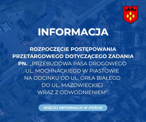„Przebudowa pasa drogowego ul. Mochnackiego w Piastowie na odcinku od ul. Orła Białego do ul. Mazowieckiej wraz z odwodnieniem”.