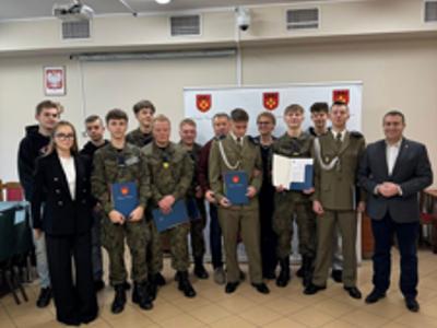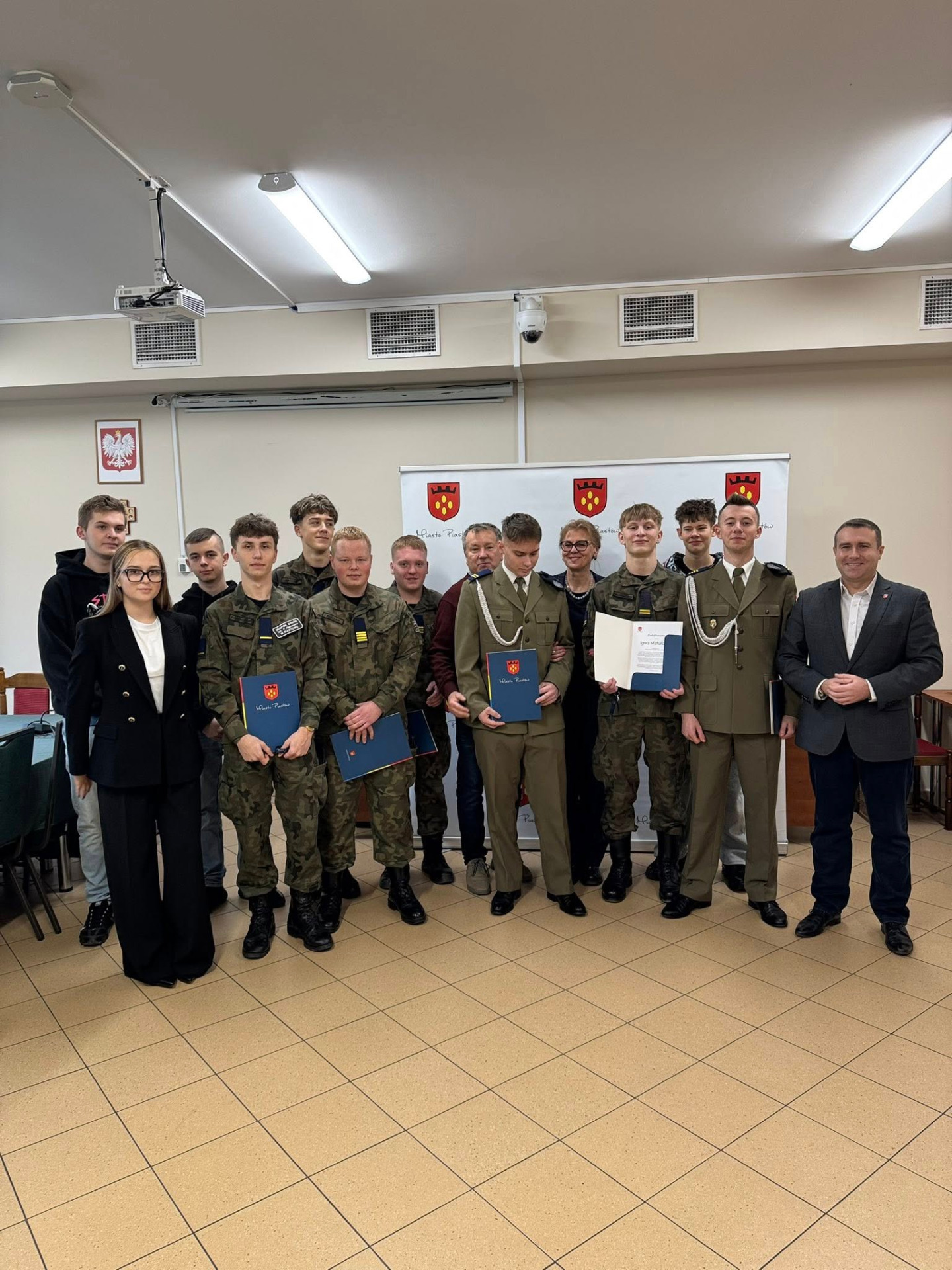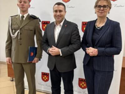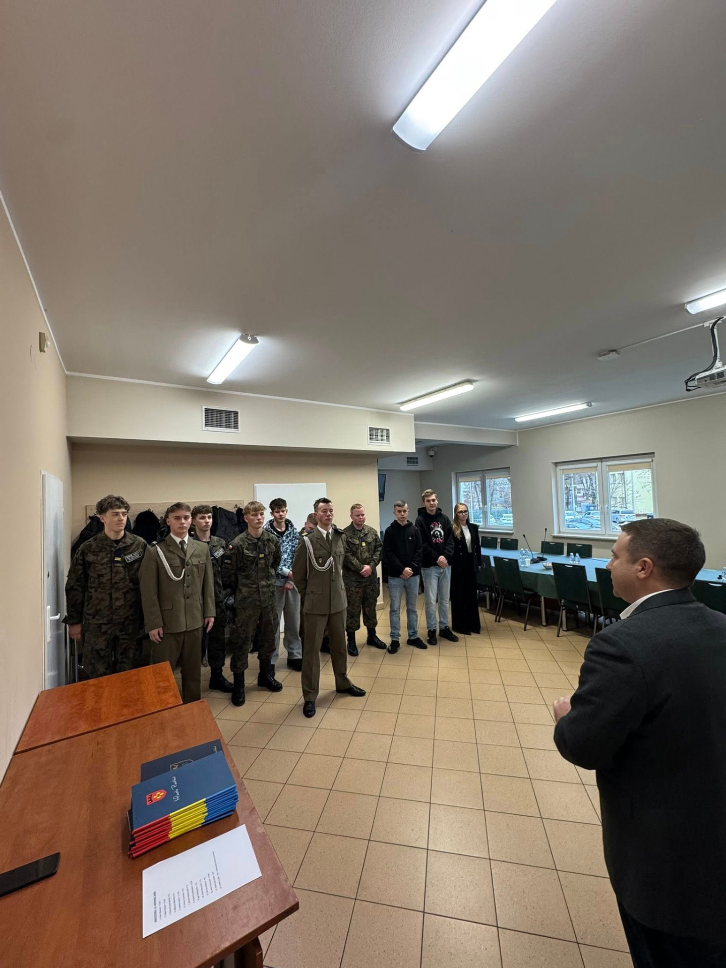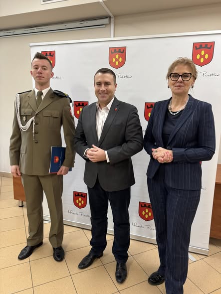 Uczniowie klasy mundurowej oraz uczniowie, którzy działają aktywnie w OSP Piastów otrzymali z rąk Tomasz Jankowski - Burmistrz Miasta Piastowa oraz Urszula Skrzypczak Zastępczyni Burmistrza Miasta, wyjątkowe podziękowania za aktywny udział w miejskich obchodach i wydarzeniach w roku 2025.