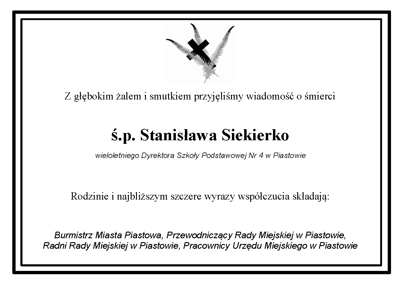 Pan Stanisław Siekierko, pełniący funkcję Dyrektora w latach 2009–2025, na trwałe zapisał się w historii piastowskiej oświaty. Był nie tylko znakomitym pedagogiem, przede wszystkim człowiekiem z pasją i sercem oddanym edukacji oraz dzieciom i młodzieży. Dzięki Jego zaangażowaniu i trosce o rozwój szkoły, kolejne pokolenia mogły zdobywać wiedzę, rozwijać swoje pasje i talenty w życzliwym, sprzyjającym rozwojowi środowisku.