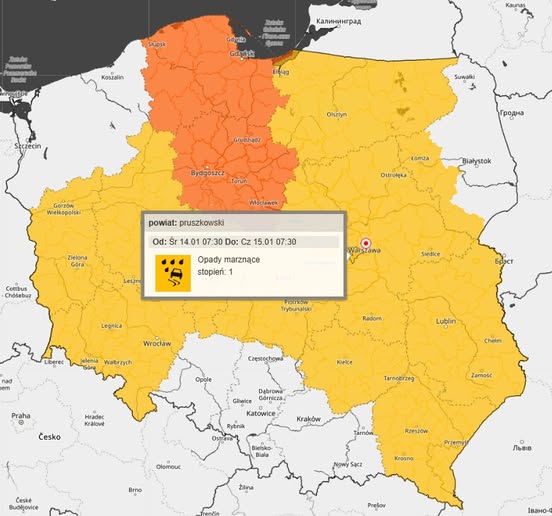 Ważność: od godz. 07:30 dnia 14 stycznia do godz. 07:30 dnia 15 stycznia 2026 r.